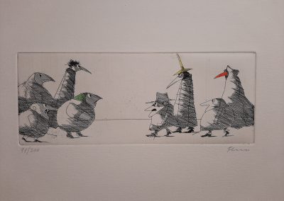 Zwei Raben und Carabinieri - Radierung - 45 x 40 cm